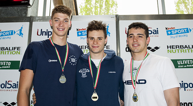 Tre invece gli altri bronzi, con Stefano Saladini (CN Torino) nei 100 rana cadetti in 1'01"13, Salvatore Papa (RN Torino) nei 50 stile ragazzi 2001 in 23"74 e ancora Emanuel Fava (RN Torino) nei 200 farfalla juniores 1999 in 2'00"46.