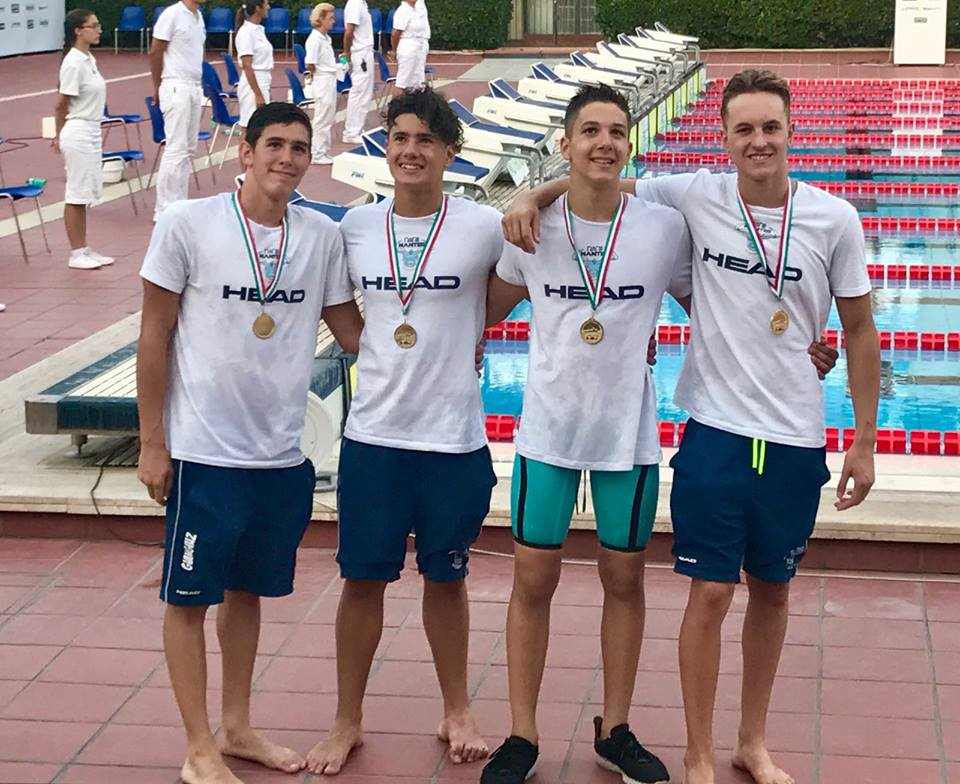 La seconda giornata dei Campionati Italiani dedicati ai Ragazzi ha regalato al Piemonte il primo titolo nazionale per quanto riguarda questa categoria, dopo i quattro argenti e il bronzo di ieri. A conquistarlo sono stati Leonardo Giraudi, Salvatore Papa, Nicolò Caloiero e Gianluca Cupitò, quartetto della 4x200 stile libero della Rari Nantes Torino. Una formazione compatta, con tutti i frazionisti capaci di nuotare sotto l'1'57'' e di proseguire la tradizione di ottime staffette giovanili della società torinese. 7'44''17 il tempo finale, di quasi due secondi migliore rispetto al crono del Circolo Canottieri Aniene, argento, e di oltre otto rispetto alla prestazione del Team Veneto, bronzo.