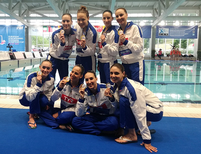 Subito sul podio - e premiati con le medaglie più preziose - gli atleti della nazionale italiana di nuoto sincronizzato, impegnati nella prima giornata di gare della Coppa Europa in programma fino a domenica allo Stadio del Nuoto di Cuneo. Fantastico oro per la squadra composta da Linda Cerruti, Beatrice Callegari, Gemma Galli, Maria Elena Gandini, Costanza Ferro, Francesca Deidda, Viola Musso, Enrica Piccoli e dalle riserve Costanza Di Camillo e Alessia Pezone. Nel programma libero le azzurre hanno ottenuto uno score di 91 netto superando la Russia, seconda formazione a scendere in acqua, e la Spagna (88,9333). Buona prestazione anche per la seconda (e più giovane) squadra italiana, composta da Raffaella Baldi, Claudia Modaelli, Lucrezia Ruggiero, Isotta Sportelli, Marta Iacoacci, Marta Murru, Aurora Savi, Francesca Zunino e dalle riserve Costanza Brogioli e Micol Trombone. Le azzurrine hanno gareggiato fuori classifica e totalizzato 83,0333 punti, uno score che avrebbe regalato loro la sesta posizione.
